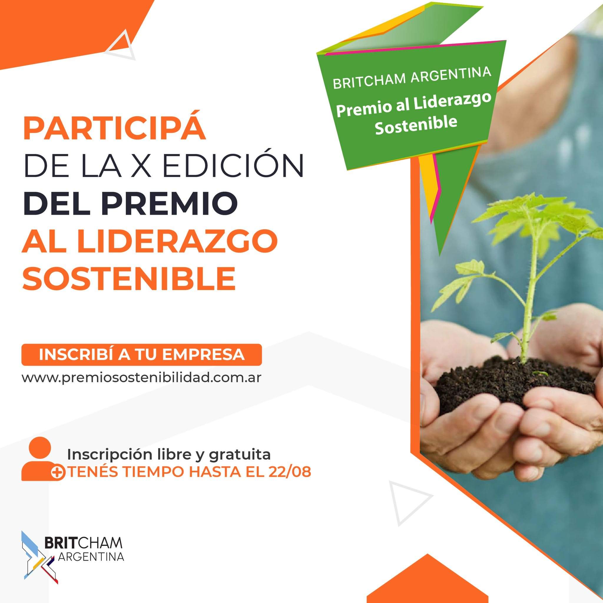 BritCham Argentina anuncia que hasta el lunes 29 de agosto continúa abierta la inscripción para la décima edición de su «Premio al Liderazgo Sostenible», certamen que reconoce a personas, empresas, gobiernos, ONGs e instituciones que realizan aportes innovadores y sobresalientes a la comunidad