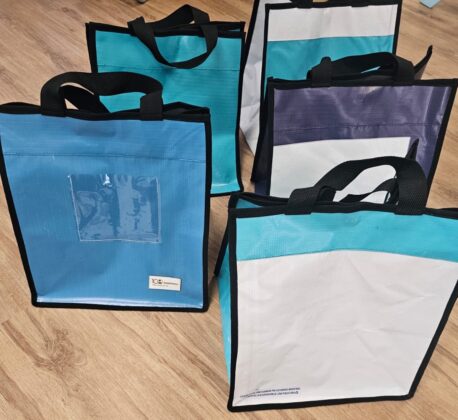 Así fue como más de 300 metros de lona publicitaria, un material que comúnmente se descarta, se transformaron en nuevas piezas con propósito.