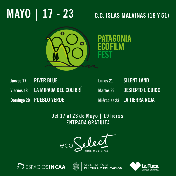 Del 17 al 23 de mayo, el PEFF – Festival Internacional de Cine Ambiental de la Patagonia llega a la ciudad de La Plata llevando en forma itinerante una selección de películas de temática ambiental, que fueron participantes en sus dos ediciones anteriores. La cita es en el Cine Municipal Eco Select – Espacio INCAA 2 La Plata, la primera sala de cine abastecida con energía solar de Latinoamérica.