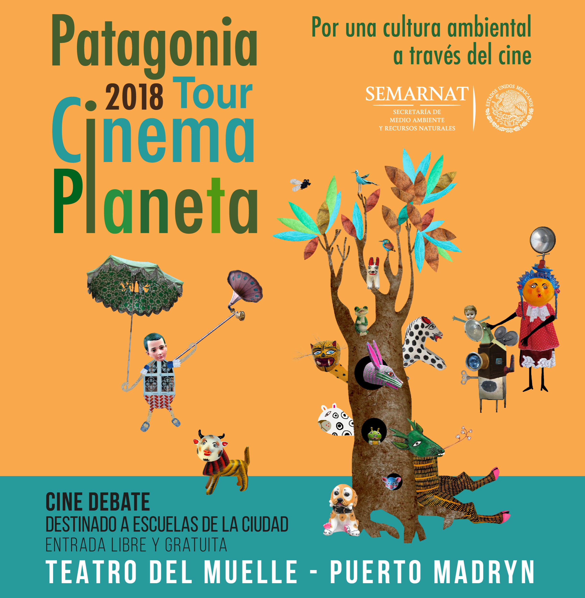 El PATAGONIA ECO FILM FEST (festival internacional de cine ambiental de la Patagonia) junto a CECADESU (centro de educación y capacitación para el desarrollo sostenible de México), la SEMARNAT (Secretaria de ambiente y recursos naturales de México) y CINE PLANETA (festival internacional de cine y medio ambiente de México) organizan la presentación de Patagonia Tour Cinema Planeta, una muestra mensual de películas de todo el mundo de temática ambiental, la misma se realizara en el Teatro del Muelle de la ciudad de Puerto Madryn en el formato Cine Debate.