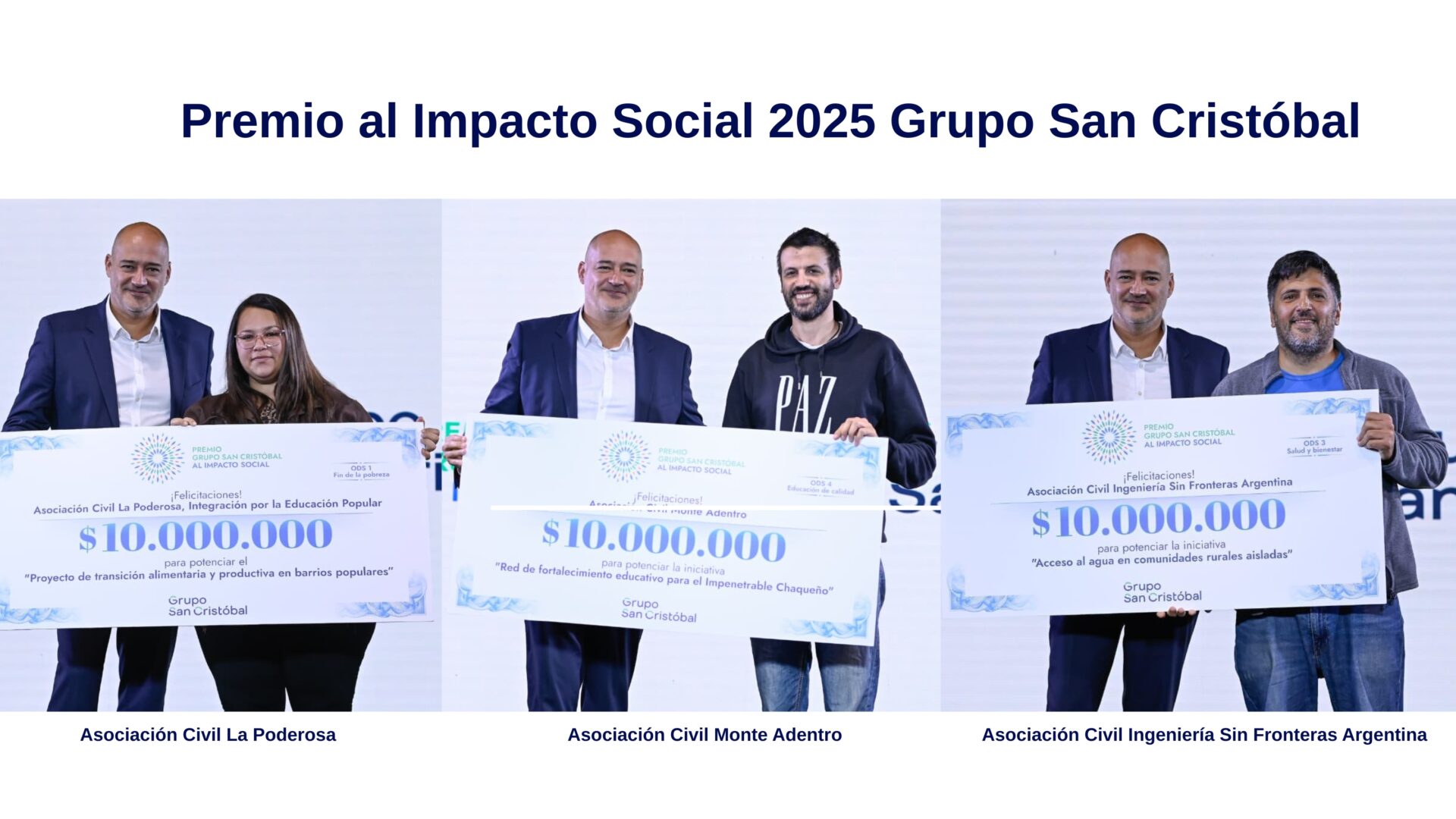 Con más de 200 postulaciones de todo el país, Grupo San Cristóbal presentó los resultados de la primera edición del Premio al Impacto Social, un reconocimiento nacional al compromiso de triple impacto que destina $30 millones a iniciativas sociales que mejoran la vida de comunidades en la Argentina.