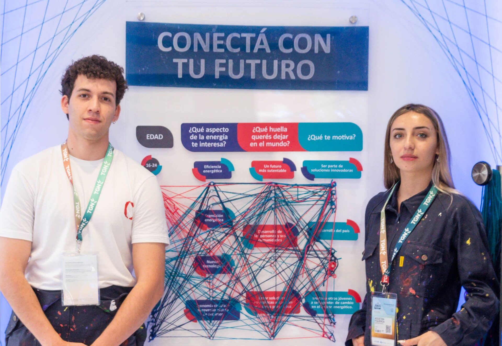 El «Wall de Conexiones», como se le denominó a este mural, contó con tres preguntas relacionadas a la industria energética en donde los jóvenes, la mayoría de áreas técnicas o Ingenierías, respondían con un hilo de colores según su rango etario (16-24; 25-34; +35), qué aspecto de la energía les interesaba; qué huella querían dejar en el mundo y qué los motivaba.